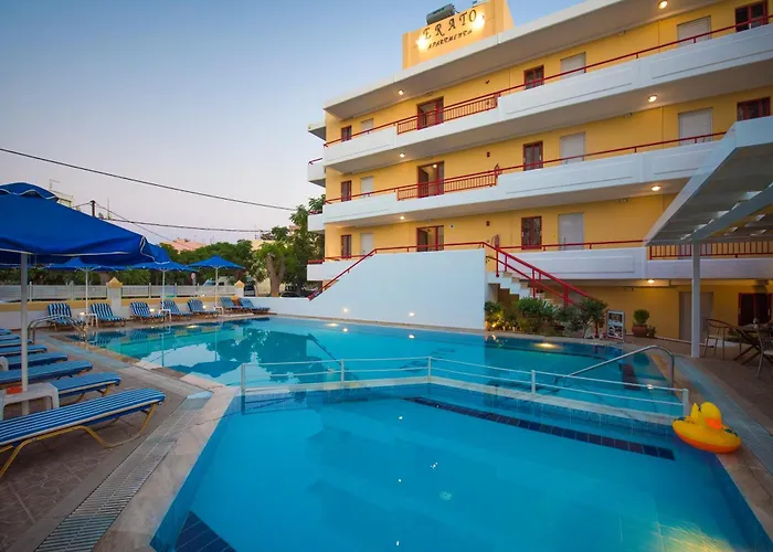 Erato Studios & Apartments je vynikající místo 10 minut chůze od centra města Kos. Všichni si užijí venkovní plavecký bazén na místě a budou obdivovat výhled na město nabízený z 26 pokojů.